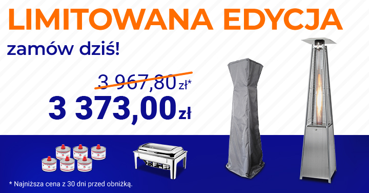 Właśnie ruszyła kolejna odsłona jubileuszowej promocji, która potrwa do 31 października 2025 r.! Tym razem to lampy grzewcze z wyposażeniem, czyli idealna okazja, aby kupić kompletne rozwiązania do ogrzewania przestrzeni zewnętrznych oraz profesjonalnego serwowania ciepłych dań.